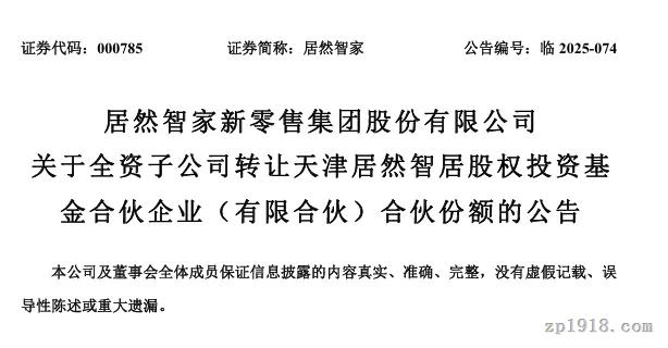 居然智家新零售集團股份有限公司(簡稱“居然智家”)發布公告,宣布其全資子公司北京居然之家商業咨詢有限公司已完成一項重要的資本運作,將持有的天津居然智居股權投資基金合伙企業全部合伙份額轉讓給佛山市新明珠企業集團有限公司。